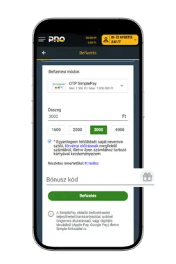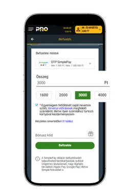 Tölts fel legalább 1 500 Ft-ot hogy tiéd legyen a 100%-os befizetési bónusz akár 3 000 Ft értékben!